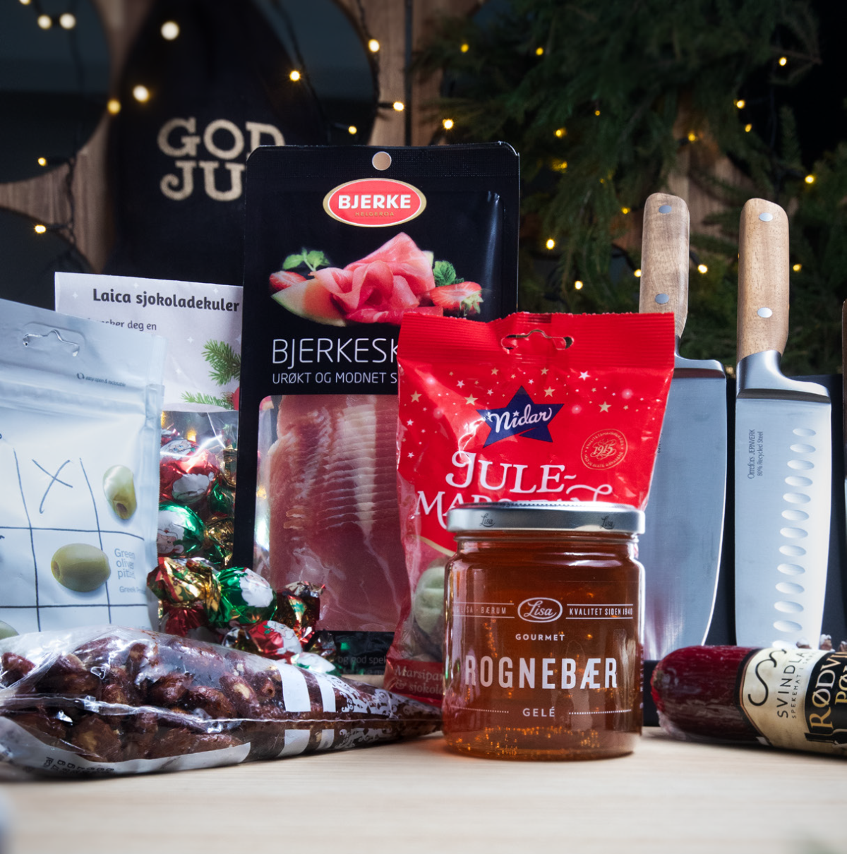 Luksuspakken er en gave som virkelig imponerer. Her kombineres utsøkte smaker med eleganse og kvalitet, fra søtt til salt og fra tradisjonelle delikatesser til moderne godsaker. Med et eksklusivt knivsett i resirkulert stål blir dette mer enn en smakfull opplevelse – det er en gave som varer, og som gjør inntrykk på både ganen og hjertet. Kommer pakket i "God Jul" striesekk i svart med tekst i gull.